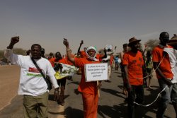 Eine Motorpanne führte zunächst zu einem ungeplanten Zwischenaufenthalt in einem Dorf auf der Strecke nach Gogui. Doch spontan kam es mit der Dorfbevölkerung zu einem interessierten Austausch und einmal mehr zeigte sich, dass die BewohnerInnen in dieser Grenzregion die Forderungen der Karawane nach Bewegungsfreiheit teilen. Immer wieder werden dort nach ihrer Rückschiebung gestrandete MigrantInnen auch materiell unterstützt.