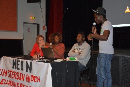Bei fast allen Veranstaltungen bestätigten und ergänzten junge Migrant_innen die Darstellung der brutalen Situation an den EU-Außengrenzen in Marokko mit spontanen und teilweise ergreifenden Redebeiträgen. Die europäischen Veranstaltungssteilnehmer_innen brachten neben inhaltlichen Nachfragen ihre Betroffenheit über das ihnen bis dato nicht bekannte Ausmaß an EU-staatlicher Gewalt gegen die Migrant_innen zum Ausdruck und warfen die Frage auf, was dagegen getan werden könne. Da kaum jemand die Hoffnung hegte, mit Gesetzesänderungen substantiell etwas ändern zu können, wurde diese Frage im Wesentlichen mit der Wichtigkeit der Unterstützung der Migrant_innen auf allen Ebenen diesseits wie jenseits der EU-Grenzen und des gemeinsamen Kampfes gegen institutionelle Rassismen und organisierten Neofaschismus beantwortet.