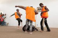 Auf der Bamako-Dakar-Karawane war durch einige Teilnehmer_innen auch die Break the Silence-Kampagne in Gedenken an Oury Jalloh vertreten. In Kayes führten sie ein Theaterstueck auf, das dessen Geschichte erzählt, wie er als 23jaehriger im Jahr 2005 in einer Gefaengniszelle in Dessau (Sachsen-Anhalt) verbrannte, nachdem er zuvor von Polizeibeamten zusammengeschlagen worden war. Sein Fall steht symbolisch fuer die Brutalitaet rassistischer Polizeigewalt in Deutschland.