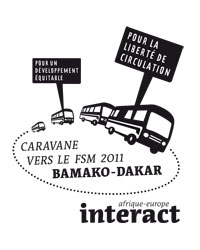 Il y aura 250 T-shirts pour les militants de Afrique-Europe-Interact. De plus, nous aurons à disposition pendant la caravane un petit appareil qui nous permettra d‘imprimer ce motif sur les chemises, jupes et T-shirts.